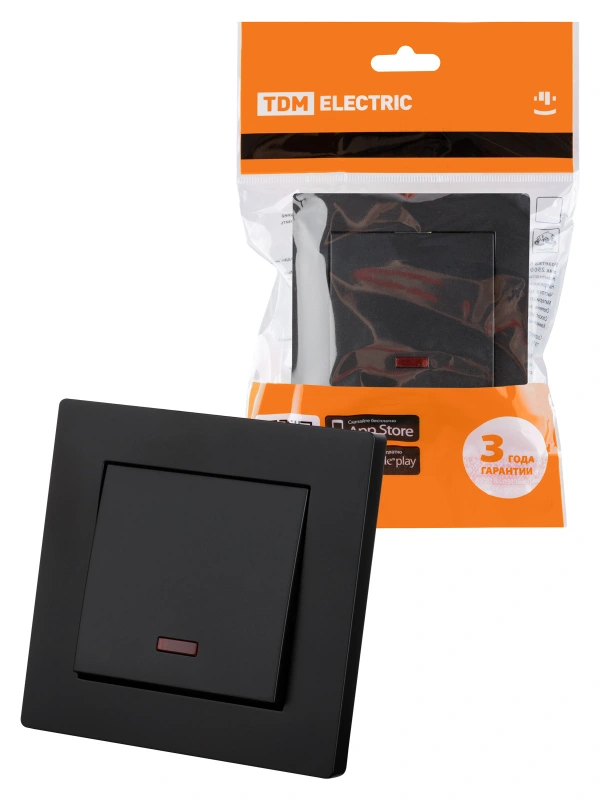 Выключатель 1 кл. с подсветкой 10А черный "Сенеж" TDM