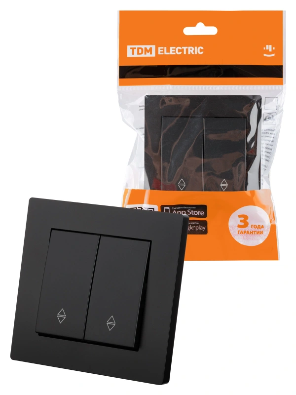 Выключатель на 2 направления 2 кл. 10А черный "Сенеж" TDM