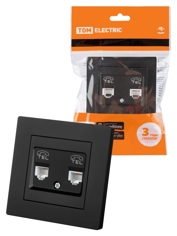 Розетка двойная телефонная RJ11 черная "Сенеж" TDM