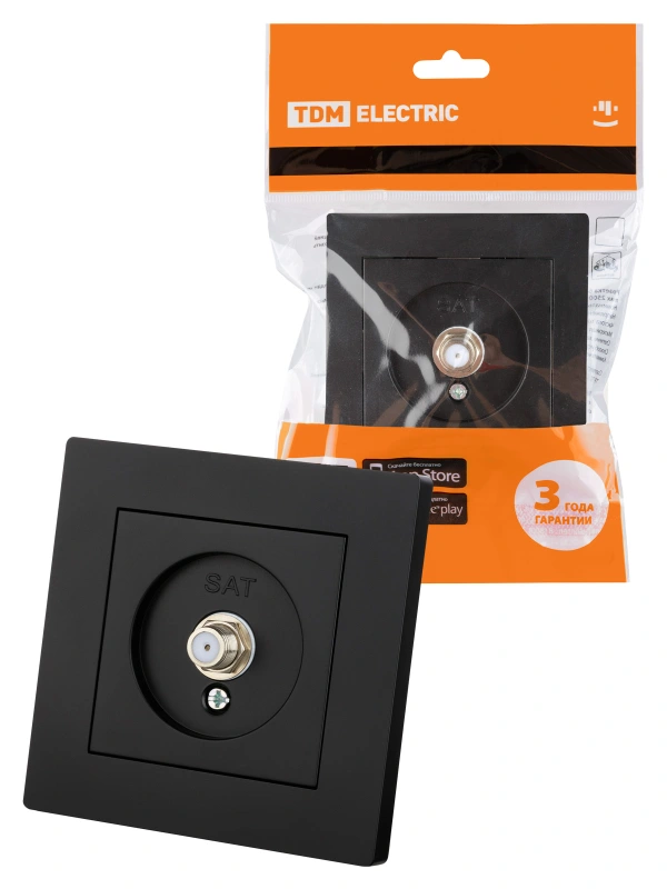 Розетка SAT (F-разъем) 0-2400МГц черная "Сенеж" TDM