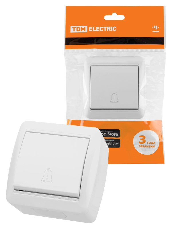 Кнопка звонковая открытой установки IP44 6А белая "Селигер" TDM