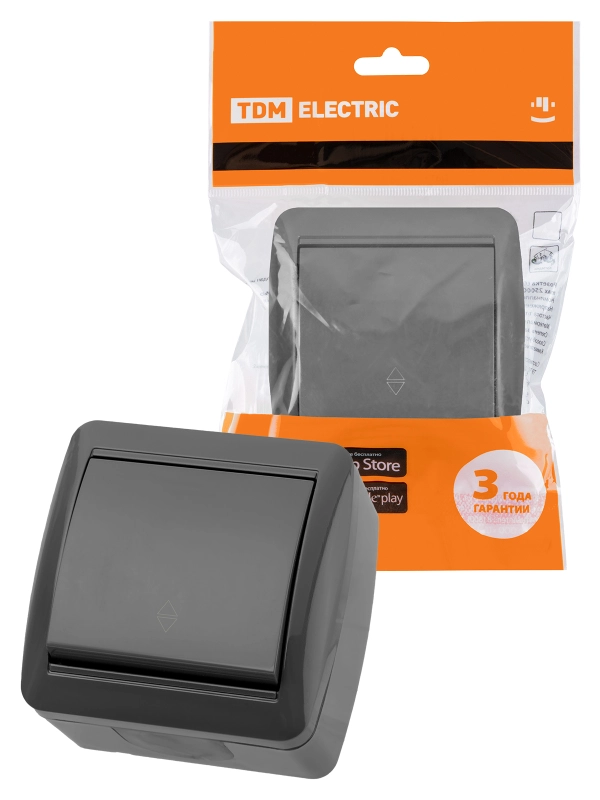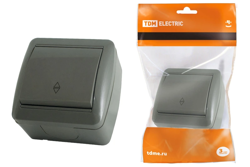 Выключатель на 2 направления 1-кл. открытой установки IP44 10А серый "Селигер" TDM