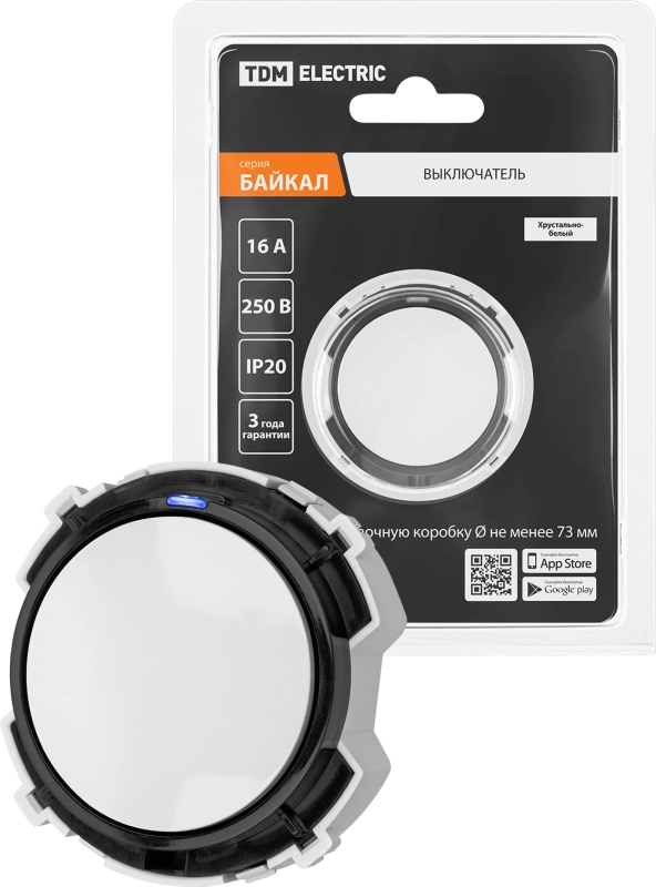 Выключатель 1-кл. 16А 250В кнопочный механизм белый, "Байкал" TDM
