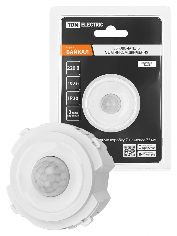 TDM Выключатель с датчиком движения 16А 250В белый, "Байкал"