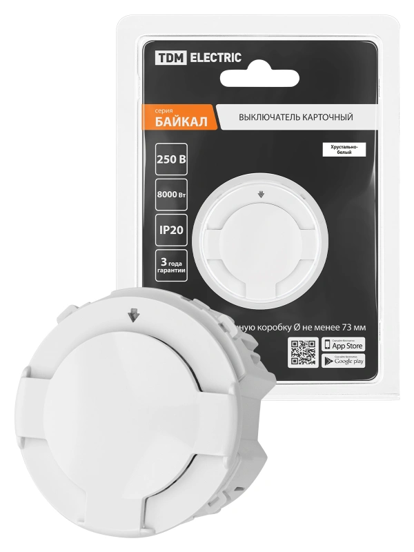 Выключатель карточный 250В 8кВт белый, "Байкал" TDM