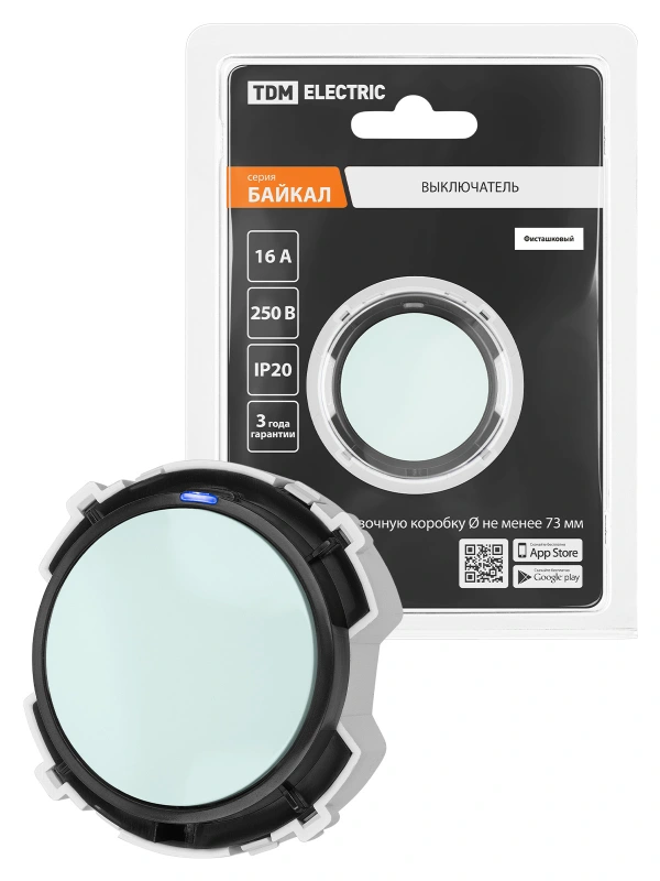 Выключатель 1-кл. 16А 250В кнопочный механизм фисташковый, "Байкал" TDM