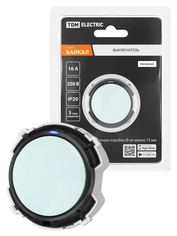 Выключатель 1-кл. 16А 250В проходной кнопочный механизм фисташковый, "Байкал" TDM