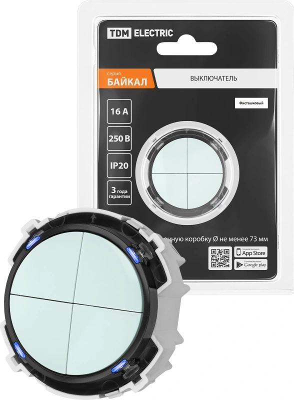 Выключатель 4-кл. 16А 250В кнопочный механизм фисташковый, "Байкал" TDM