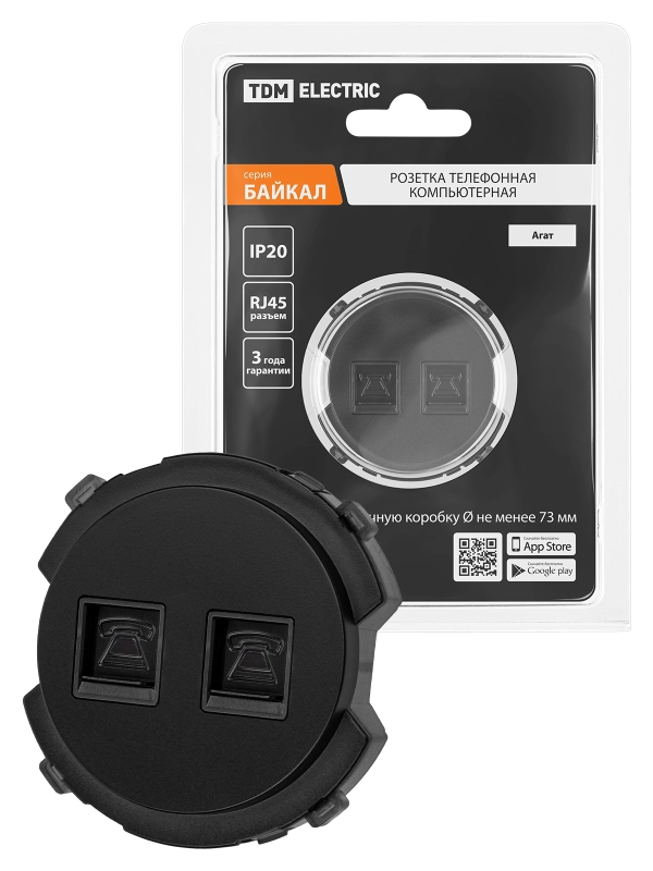 Розетка телефонная двойная RJ11 агат, "Байкал" TDM