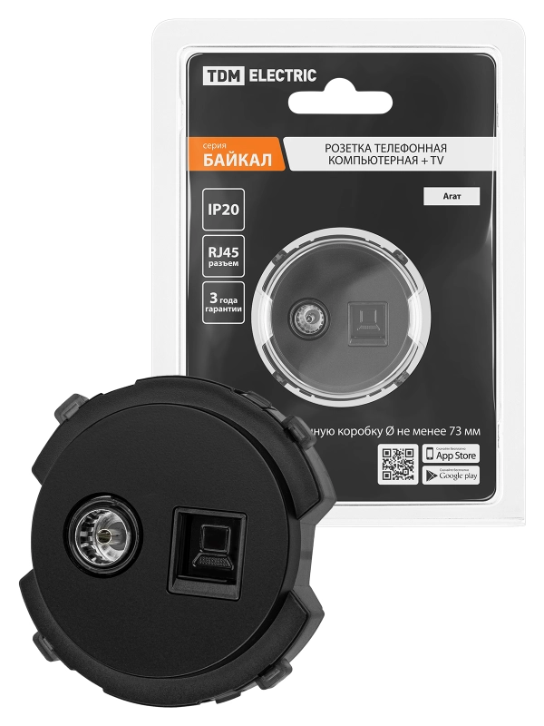 Розетка компьютерная RJ45 + TV розетка оконечная агат, "Байкал" TDM