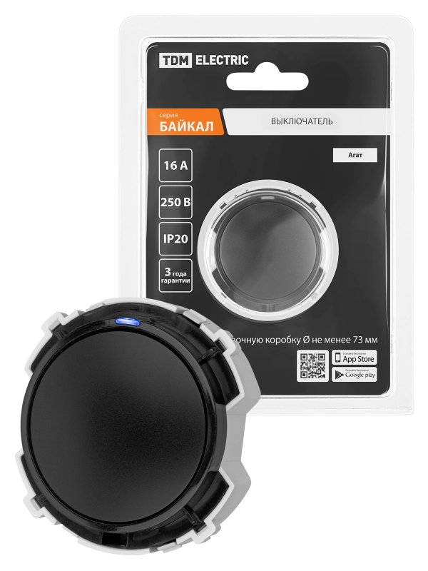 Выключатель 1-кл. 16А 250В кнопочный механизм агат, "Байкал" TDM