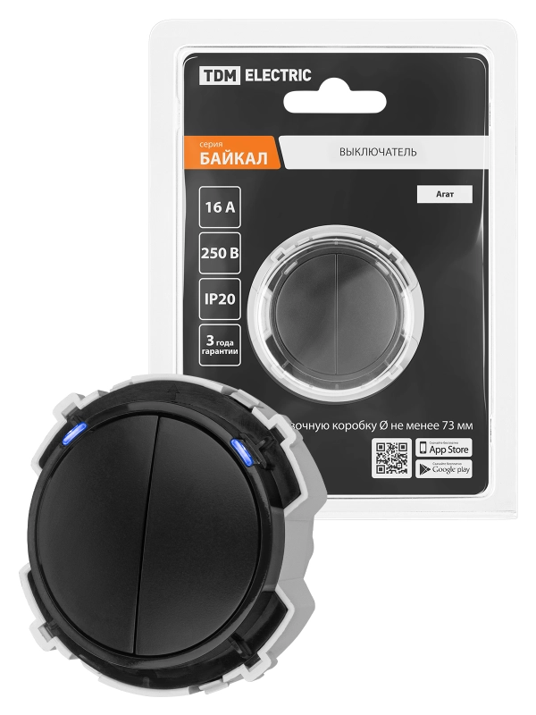 Выключатель 2-кл. 16А 250В кнопочный механизм агат, "Байкал" TDM