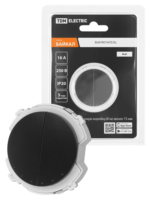 Выключатель 2-кл. 16А 250В агат, "Байкал" TDM