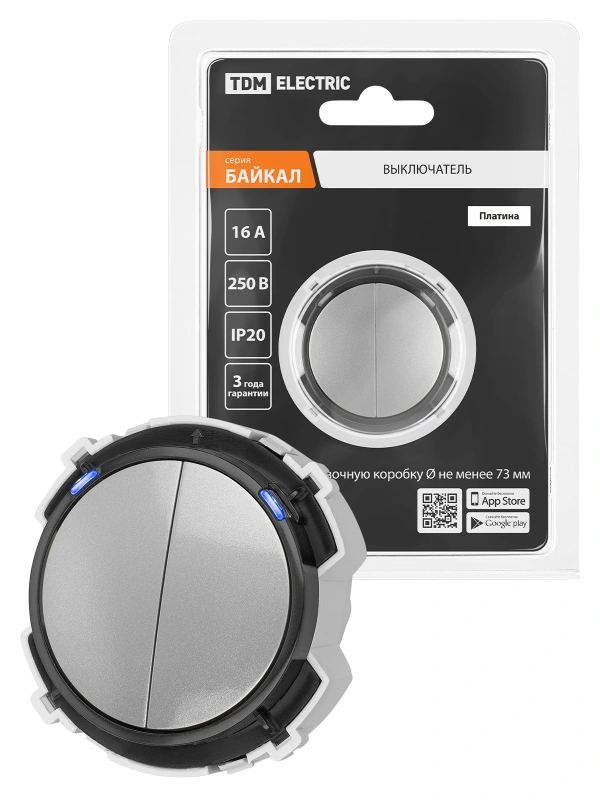 Выключатель 2-кл. 16А 250В кнопочный механизм платина, "Байкал" TDM