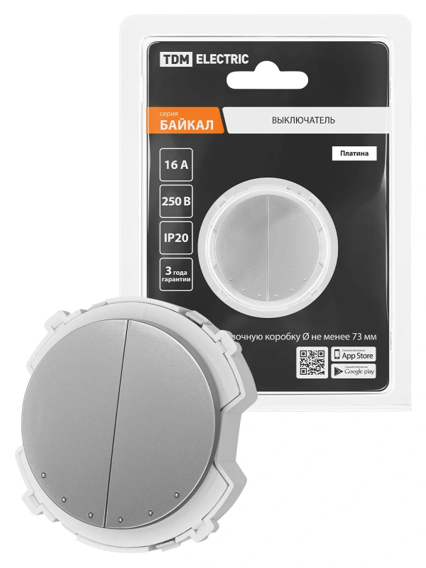 TDM Выключатель 2-кл. 16А 250В проходной платина, "Байкал"