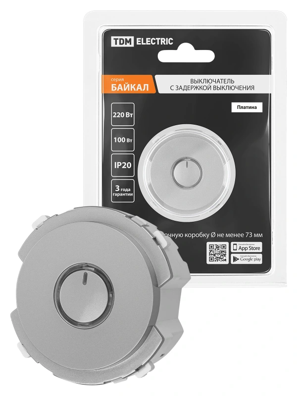 TDM Выключатель с задержкой выключения 16А 250В платина, "Байкал"