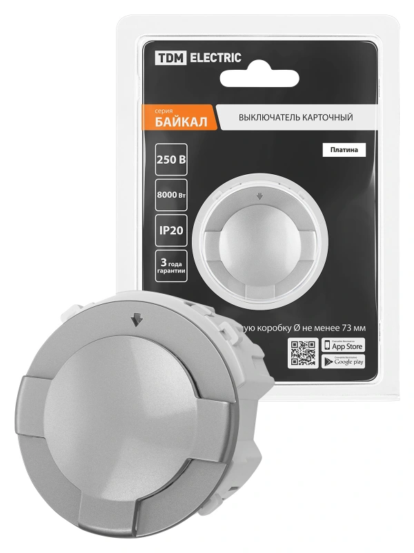 Выключатель карточный 250В 8кВт платина, "Байкал" TDM