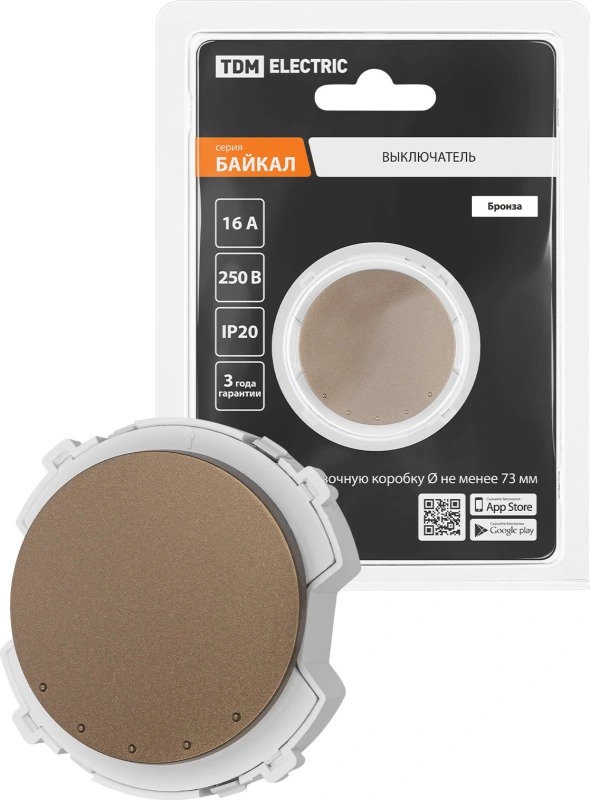 TDM Выключатель 1-кл. 16А 250В проходной бронза, "Байкал"