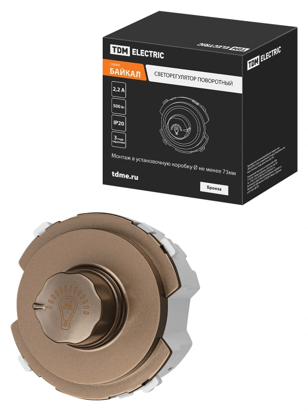 TDM Светорегулятор (RL, 500Вт) поворотный бронза, "Байкал"