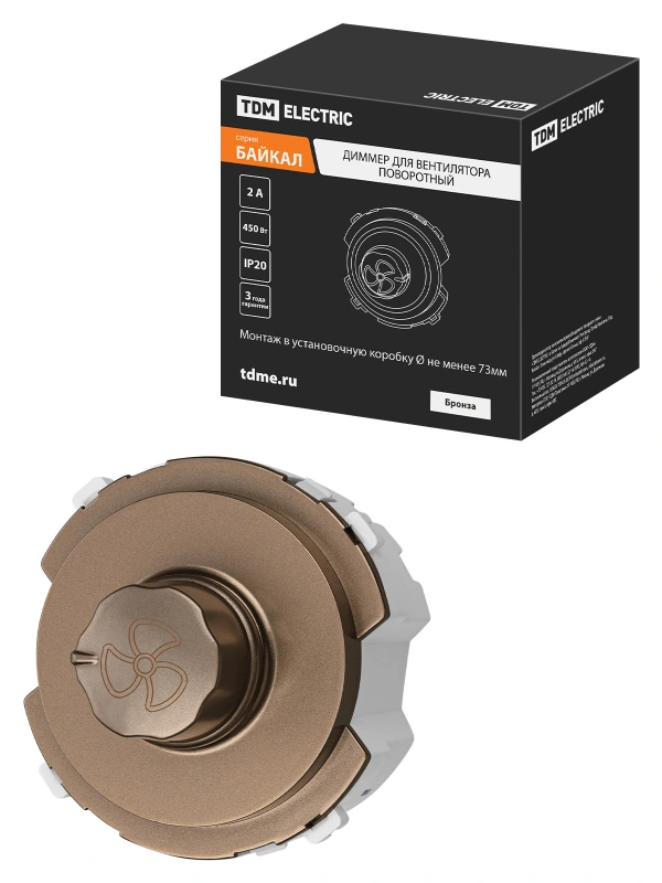 Диммер для вентилятора (RL, 500Вт) поворотный бронза, "Байкал" TDM