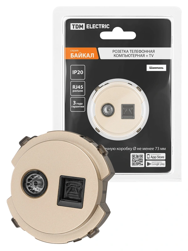 Розетка телефонная RJ11 + TV розетка оконечная шампань, "Байкал" TDM