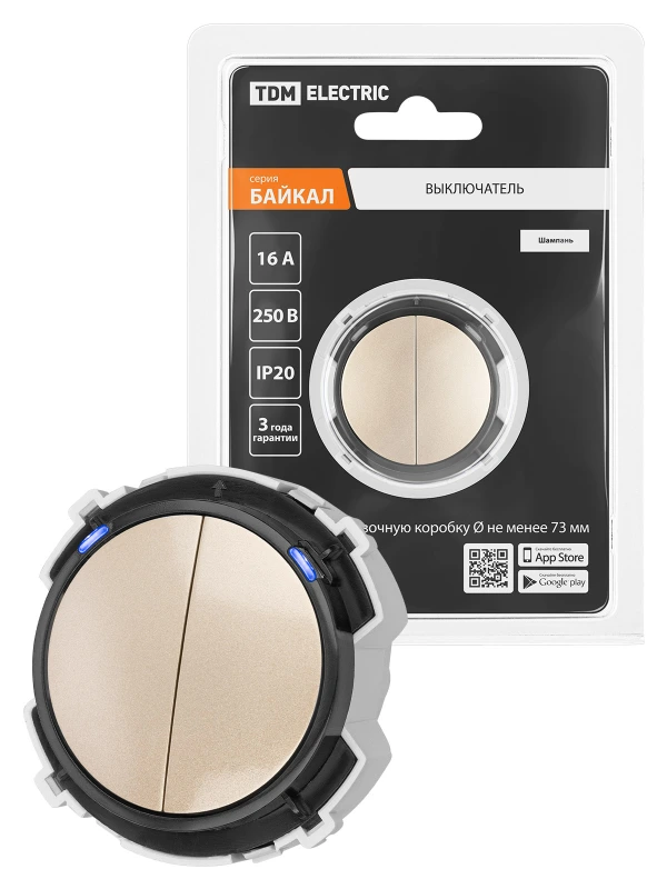 Выключатель 2-кл. 16А 250В кнопочный механизм шампань, "Байкал" TDM