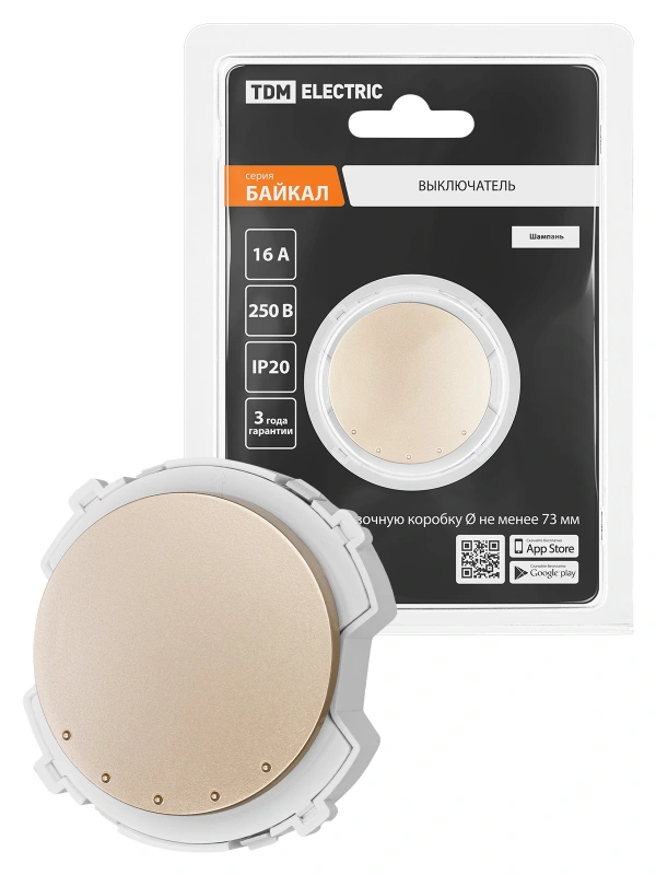 TDM Выключатель 1-кл. 16А 250В проходной шампань, "Байкал"