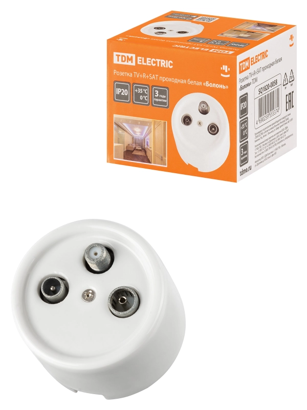 Розетка TV+R+ SAT проходная белая «Болонь» TDM