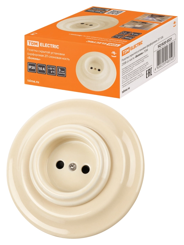 Розетка скрытой установки фарфоровая 2П 10А 250В сл. кость «Болонь» TDM