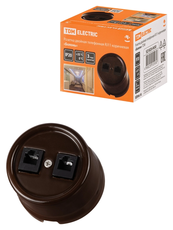 Розетка двойная телефонная RJ11 коричневая «Болонь» TDM