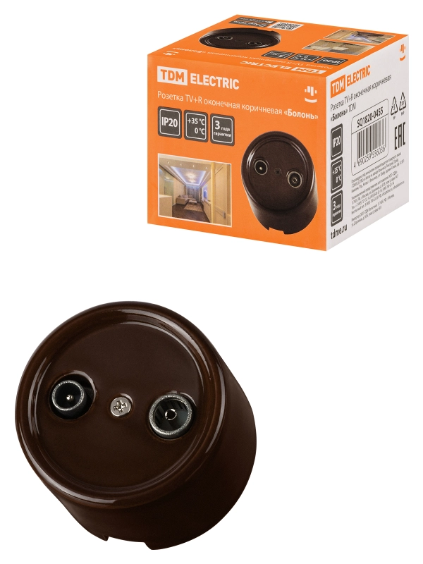 Розетка TV+R оконечная коричневая «Болонь» TDM