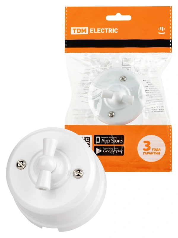 TDM Выключатель поворотный 2-кл. с ручкой (бантик) 10А белый «Виви»