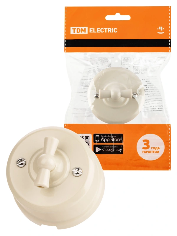 TDM Выключатель поворотный 2-кл. с ручкой (бантик) 10А сл. кость «Виви»