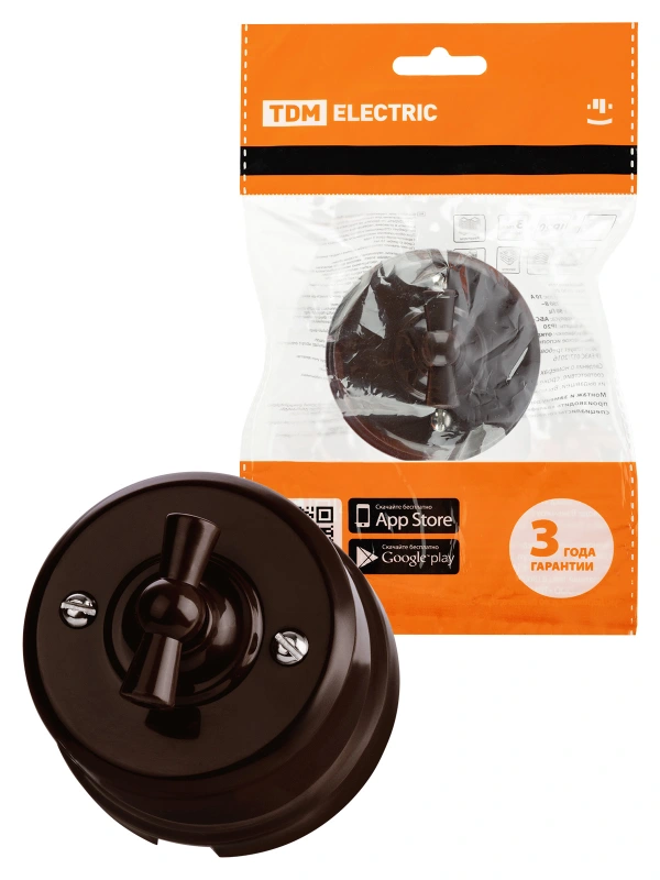 TDM Выключатель поворотный 2-кл. с ручкой (бантик) 10А коричневый «Виви»