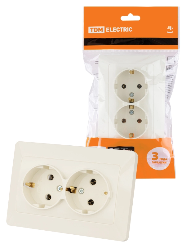 Розетка двойная 2П+З 16А 250В сл. кость "Ильмень" TDM