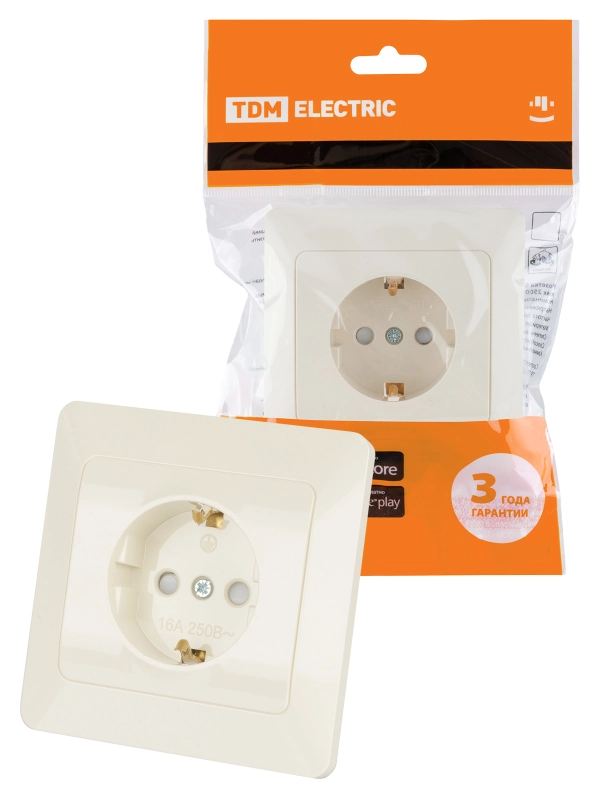 Розетка 2П+З с защ. шт. 16А 250В сл. кость "Ильмень" TDM