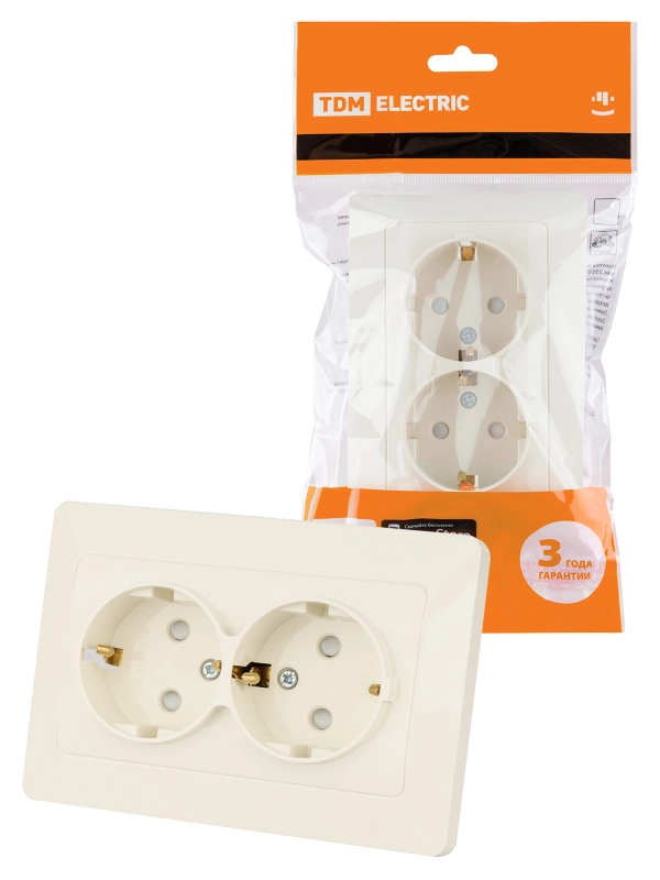 Розетка двойная 2П+З с защ. шт. 16А 250В сл. кость "Ильмень" TDM