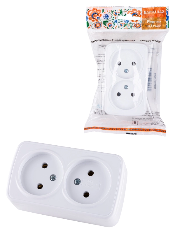 Розетка двойная 2П открытой установки IP20 10А, белая "Дача" Народная