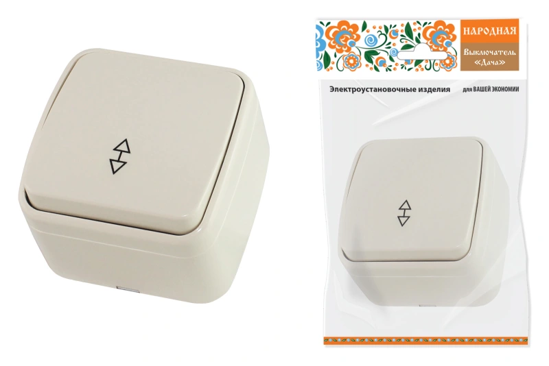 Переключатель на 2 направления 1-кл. открытой установки IP20 10А, сл. кость "Дача" Народная
