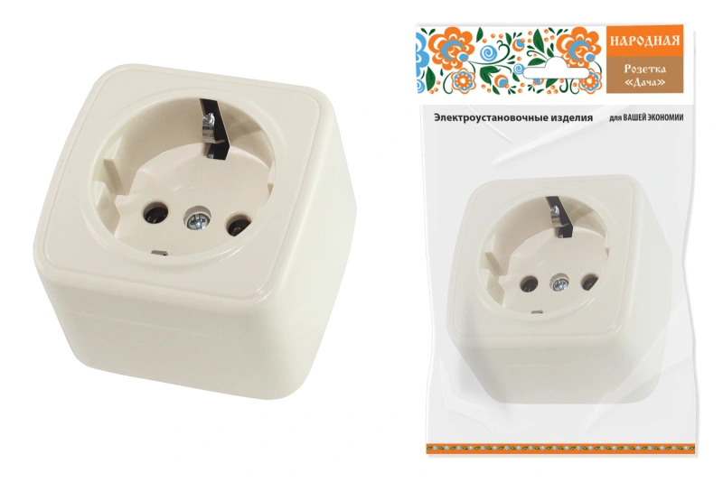 Розетка 2П+З открытой установки IP20 16А, сл. кость "Дача" Народная