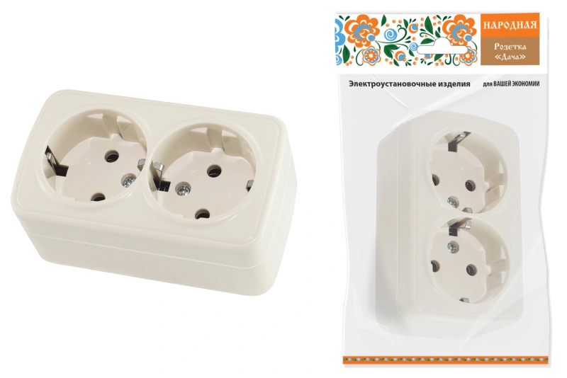 Розетка двойная 2П+3 открытой установки IP20 16А, сл. кость "Дача" Народная