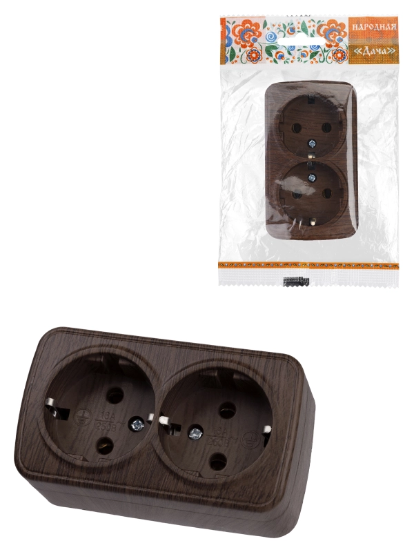 TDM Розетка двойная 2П+3 открытой установки IP20 16А, венге "Дача" Народная
