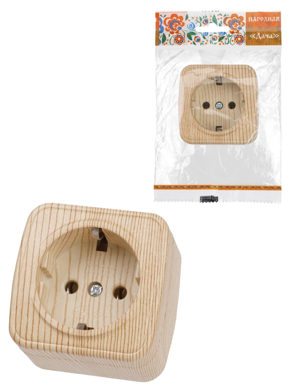 TDM Розетка 2П+З открытой установки IP20 16А, сосна "Дача" Народная