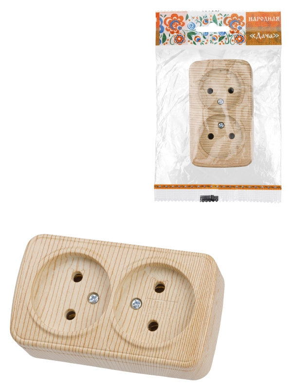 TDM Розетка двойная 2П открытой установки IP20 10А, сосна "Дача" Народная