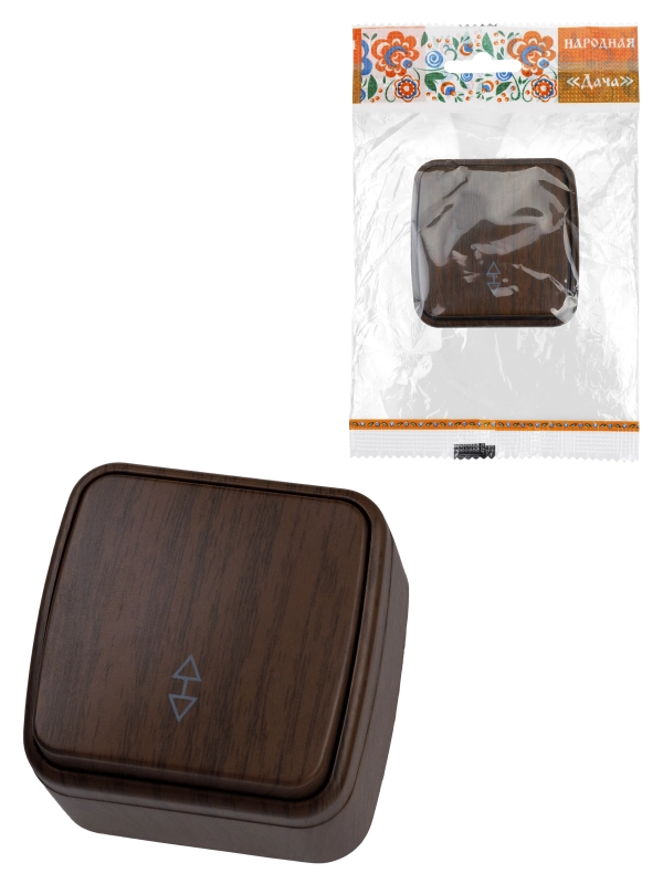 TDM Переключатель на 2 направления 1-кл. открытой установки IP20 10А, венге "Дача" Народная