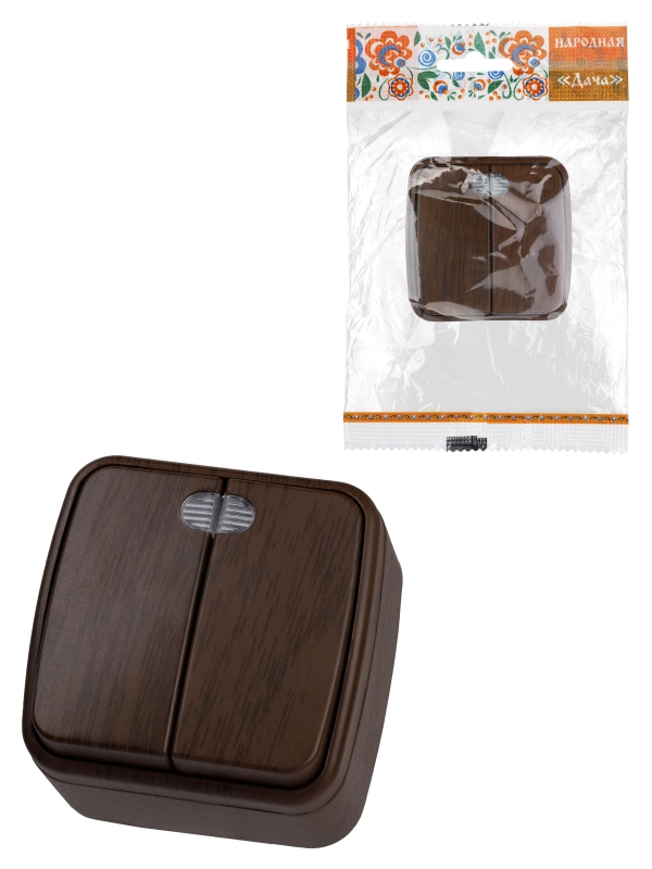 TDM Выключатель 2-кл. открытой установки с подсветкой IP20 10А, венге "Дача" Народная
