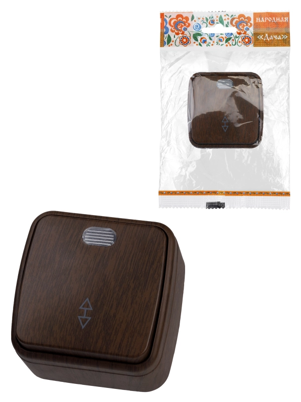 TDM Переключатель на 2 направления 1-кл. открытой установки с подсветкой IP20 10А, венге "Дача" Народная