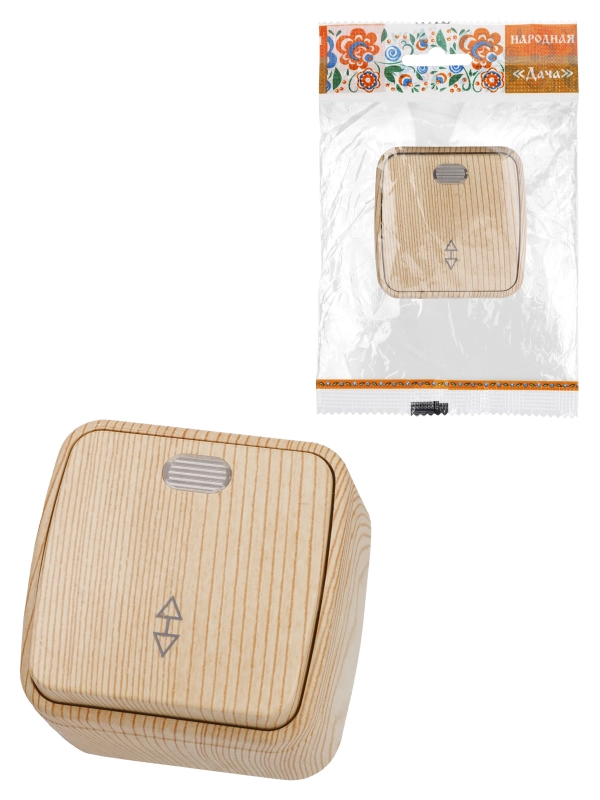 TDM Переключатель на 2 направления 1-кл. открытой установки с подсветкой IP20 10А, сосна "Дача" Народная