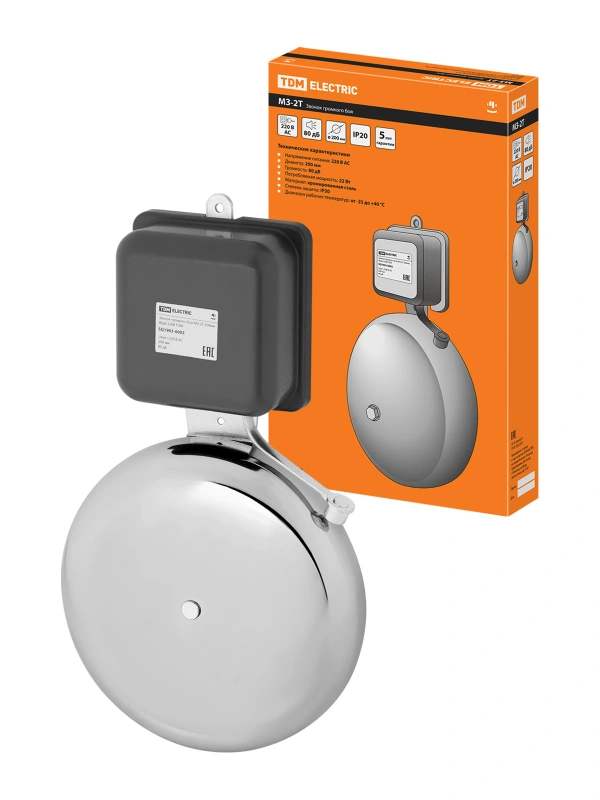 Звонок громкого боя МЗ-2Т-200мм 80дБ 220В TDM