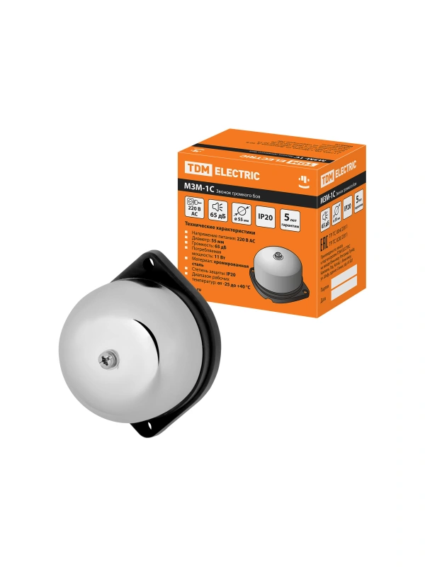 Звонок громкого боя МЗМ-1С-055мм 65дБ 220В TDM
